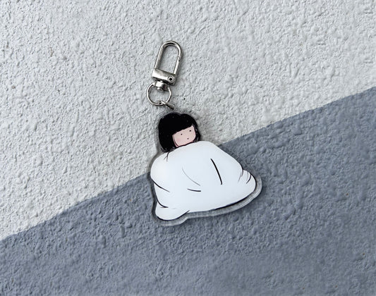 Miss Ng Yuk Stays Warm in a Quilt Keychain