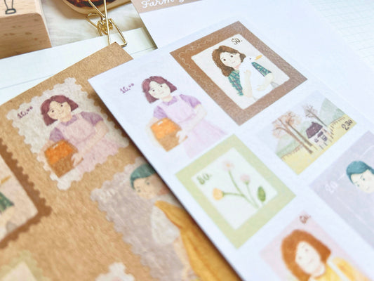Farm Girls Stamp Shape Sticker Sheet