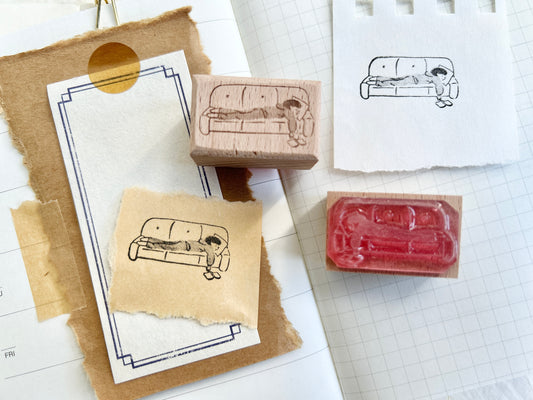 Miss Ng Yuk Lying on Sofa Watching TV Stamp