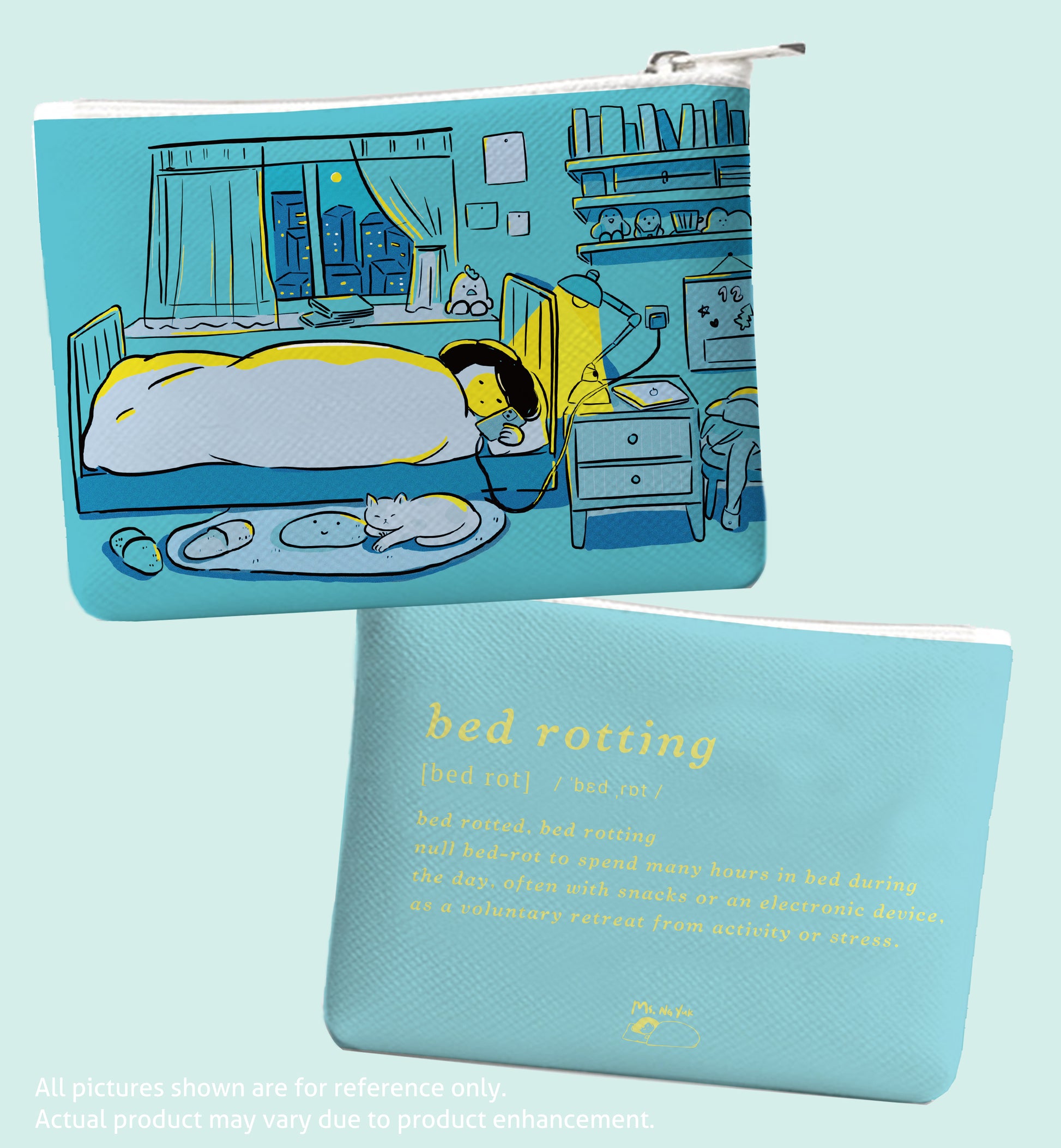 Inspired by Miss Ng Yuk's viral "Bed Rotting" philosophy, this cheeky makeup pouch celebrates the art of doing absolutely nothing—guilt-free. Perfect for the modern woman who knows that self-care sometimes means staying cozy under the covers, this quirky accessory keeps your essentials organized while you embrace that carefree, unwind-and-relax energy. Because let's face it, bed rotting isn't laziness; it's therapy. Your go-to companion for all your storage needs, with a side of humor.
